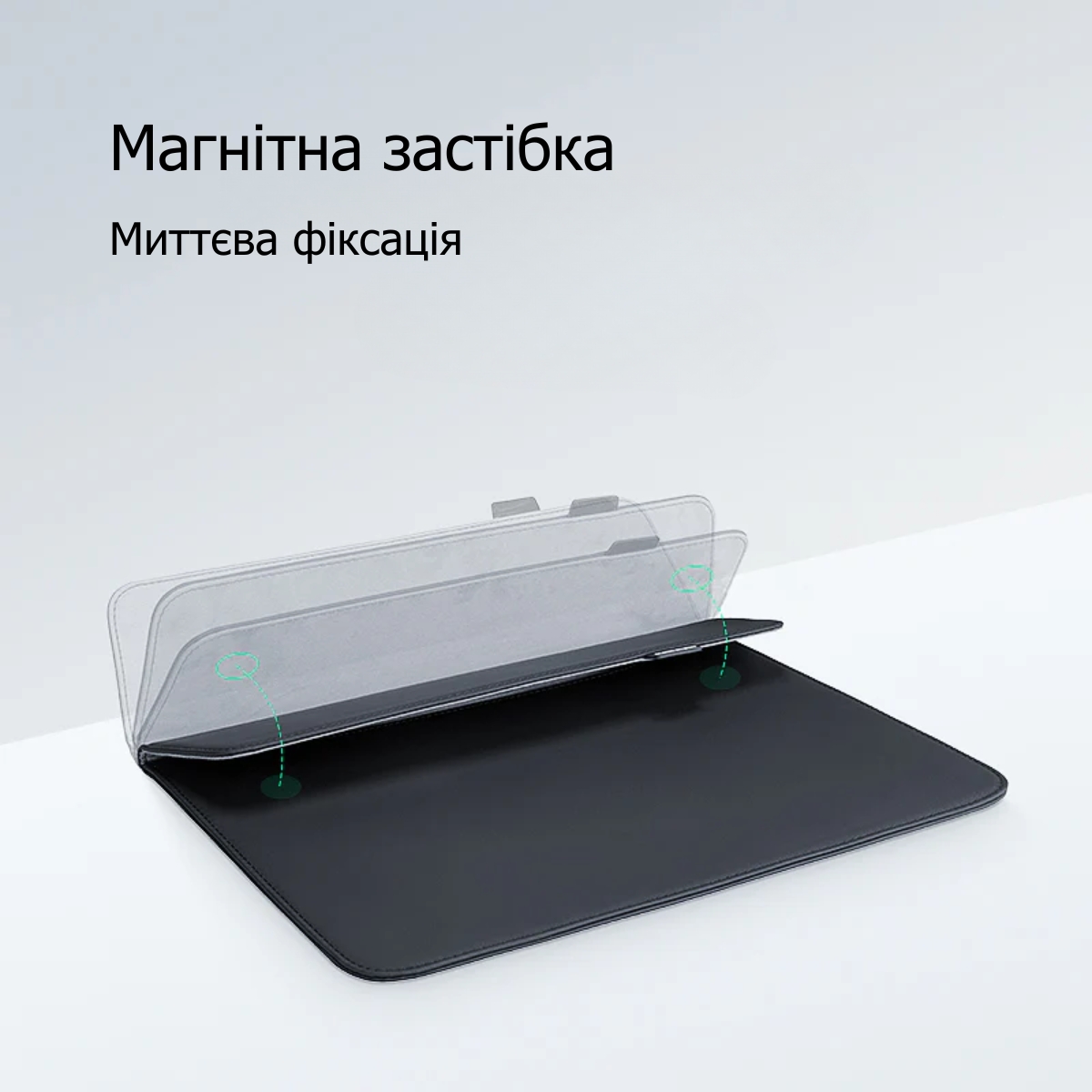 Безшовна магнітна кнопка-застібка забезпечує миттєве відкриття та закриття одним рухом. Магніт фіксує надійно, але не потребує зусиль під час відкриття, що особливо зручно у дорозі.