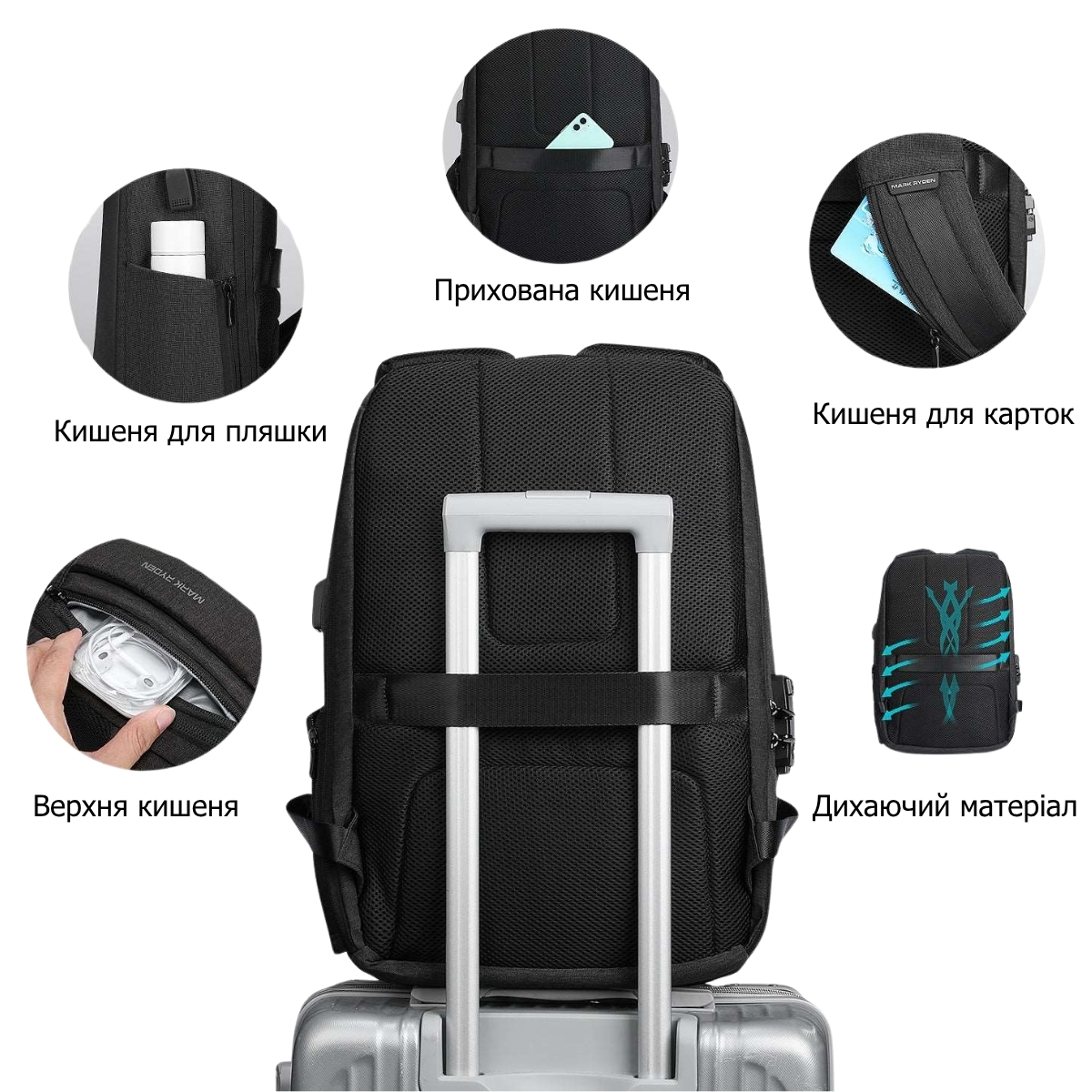 Рюкзак для ноутбука 15,6" Mark Ryden 9405YY з вбудованим дощовиком і кодовим замком