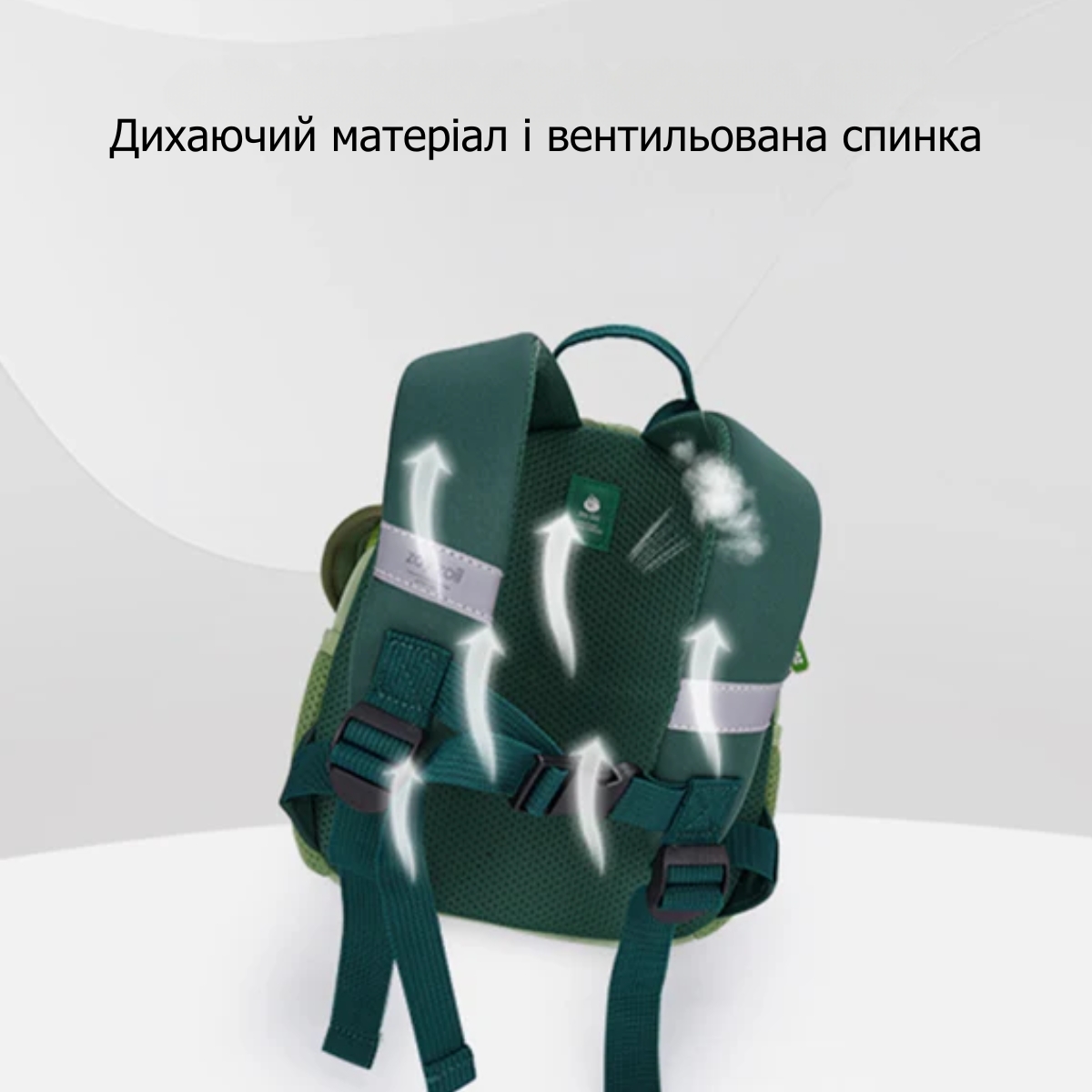 Сетчатая спинка с вентиляционными каналами обеспечивает полное покрытие и постоянную циркуляцию воздуха даже в жаркий летний день. Материал SBR легко пропускает воздух и не дает спине ребенка перегреваться во время активных игр и прогулок. Благодаря этому рюкзак остается комфортным в любую погоду.