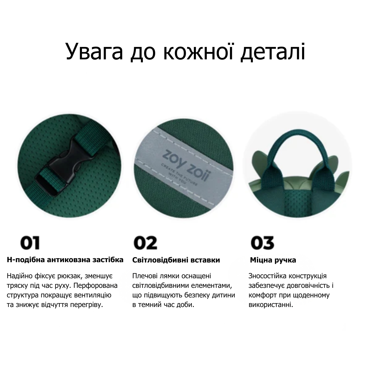 Плечевые ремни оснащены светоотражающими полосками, что повышает видимость ребенка в сумерках и обеспечивает дополнительную безопасность на улице. Прочная верхняя ручка позволяет удобно переносить рюкзак в руке или вешать на крючок.