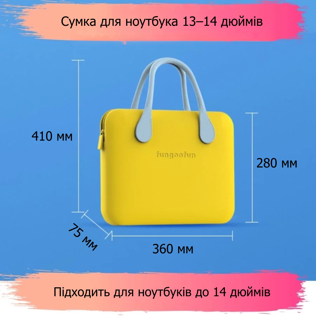 Сумка для ноутбука 14" Fungoofun Yellow станет отличным выбором для студентов, которые ежедневно носят ноутбук на занятия, офисных сотрудников, которым важен аккуратный и стильный внешний вид, людей, которые много путешествуют или работают в дороге, а также для тех, кто ценит яркий индивидуальный стиль и надежную защиту техники одновременно.