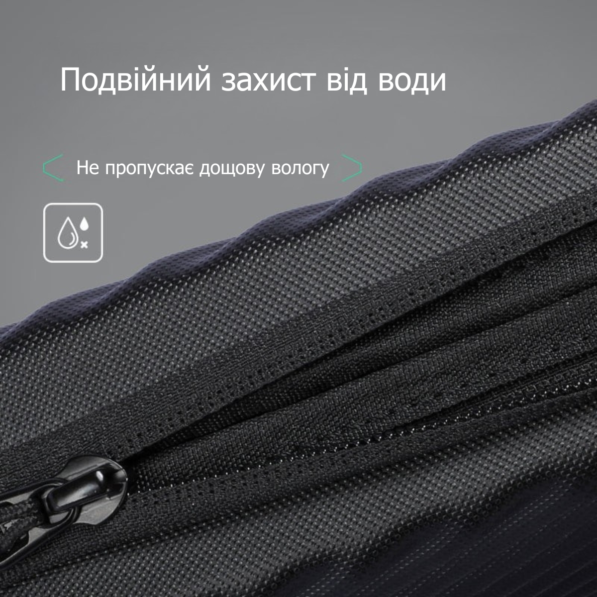 Матеріал PU забезпечує базовий захист від бризок, проте сумка не призначена для тривалого перебування під дощем.