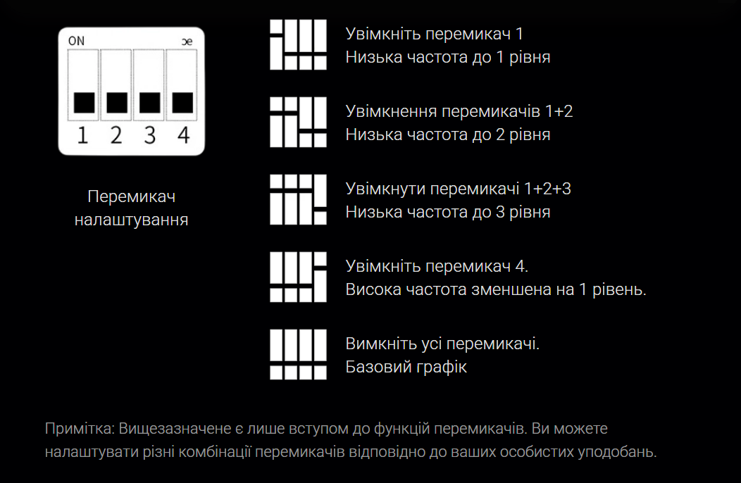 Завдяки 4-рівневому перемикачу ви можете легко змінювати характер звучання відповідно до своїх потреб. Посилюйте бас, виділяйте вокал або обирайте універсальний баланс — ці наушники проводні адаптуються під будь-який жанр. Це особливо зручно для користувачів, які слухають різну музику або працюють зі звуком.
